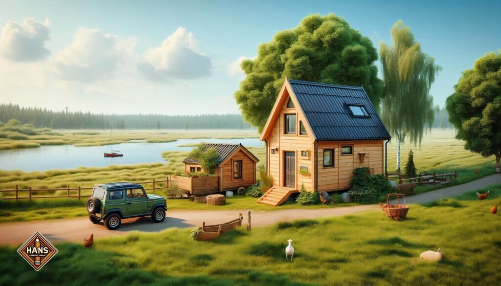 Hun huisje laten zij bouwen. Hans zou graag zelf zijn 2 rechterhanden uit de mouwen willen steken, maar is daar fysiek niet toe in staat. ,,Gelukkig zijn er tegenwoordig veel prachtige en ecologisch verantwoorde tiny houses beschikbaar, tegen redelijke prijzen. Door een tiny house te laten bouwen, kunnen we onze wensen en duurzaamheidsdoelen realiseren met de expertise van professionals, terwijl we toch een huisje krijgen dat helemaal bij ons past’’, aldus de 56-jarige managementconsultant, die wel de woondroom eigenhandig een gezicht heeft gegeven. ,,Ik ben een echte beelddenker en maak graag plaatjes van wat ik in mijn hoofd zie. Het is een hobby van mij waar ik veel plezier uithaal. Deze beelden helpen niet alleen om mijn ideeën visueel te maken, maar ook om anderen een beter beeld te geven van hoe onze droom eruitziet. Het voegt iets tastbaars toe en versterkt het verhaal dat we willen vertellen. Natuurlijk begrijpen we dat het misschien niet helemaal haalbaar is. We zijn bereid om concessies te doen, maar niet tegen elke prijs, zowel letterlijk als figuurlijk.’’