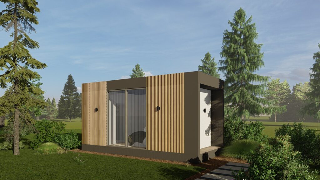Wij leveren alle benodigde onderdelen in één compleet pakket: van metalen funderingsframe en vloer-, wand- en dakpanelen tot ramen, deuren, sanitair, dakbedekking, gevelafwerking, schroeven en lijmen. Onderdelen die je liever zelf regelt of wilt hergebruiken, kun je eenvoudig uit het pakket laten.