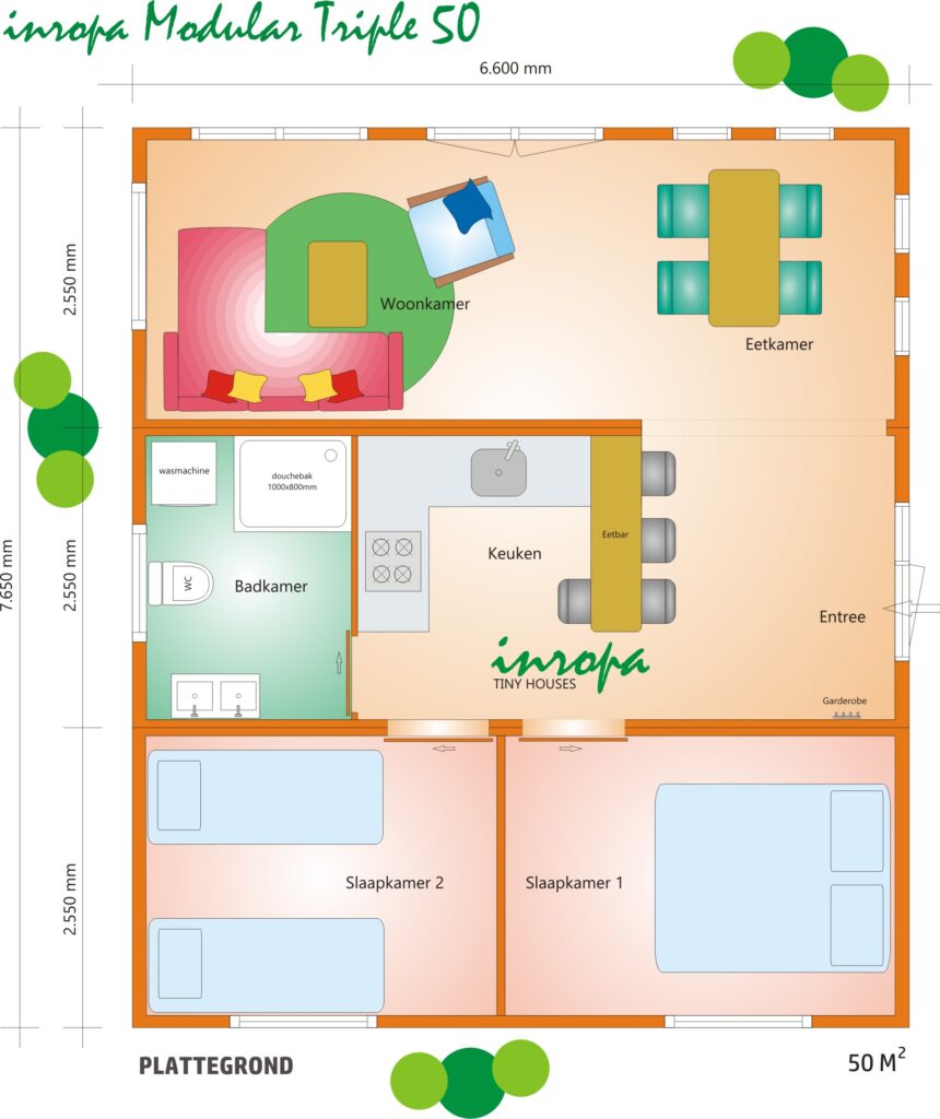 Als koper heb je inspraak in vormgeving en indeling, zo kunnen bijvoorbeeld de modules van een IMTH in verschillende configuraties gekoppeld worden. Iedere IMTH is standaard voorzien van een badkamer, keuken, all-electric verwarming en warm water, woonkamer en één of meer slaapkamers. Ze kunnen volledig afgewerkt worden opgeleverd, maar ook als casco. Wil je off-grid dan is dat geen probleem. Doordat Inropa bouwt in haar eigen productiehallen in Nederland kunnen korte bouwtijden en scherpe prijsstellingen worden gegarandeerd.